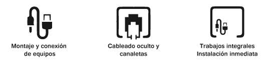 Que van desde el montaje de sus equipos, conexión de los mismos, cableado oculto, canaletas, etc.